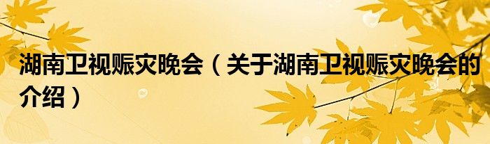 湖南卫视赈灾晚会(关于湖南卫视赈灾晚会的介绍)