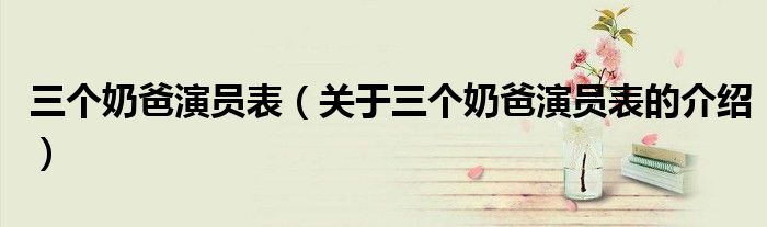 大家好,今天小乐来为大家解答以上的问题。三个奶爸演员表,关于三个奶爸演员表的介绍很多人还不知道,现在让我们一起来看看吧!