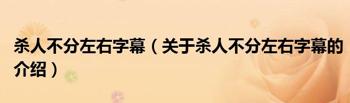 大家好,今天小乐来为大家解答以上的问题。杀人不分左右字幕,关于杀人不分左右字幕的介绍很多人还不知道,现在让我们一起来看看吧!
