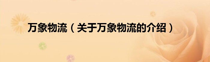 大家好,小都来为大家解答以上的问题。万象物流,关于万象物流的介绍很多人还不知道,现在让我们一起来看看吧!