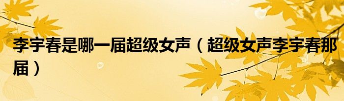 关于李宇春是哪一届超级女声,超级女声李宇春那届这个很多人还不知道,今天菲菲来为大家解答以上的问题,现在让我们一起来看看吧!