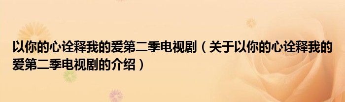 以你的心诠释我的爱第二季电视剧(关于以你的心诠释我的爱第二季电视剧的介绍)