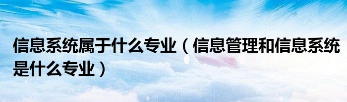 关于信息系统属于什么专业,信息管理和信息系统是什么专业这个很多人还不知道,今天菲菲来为大家解答以上的问题,现在让我们一起来看看吧!
