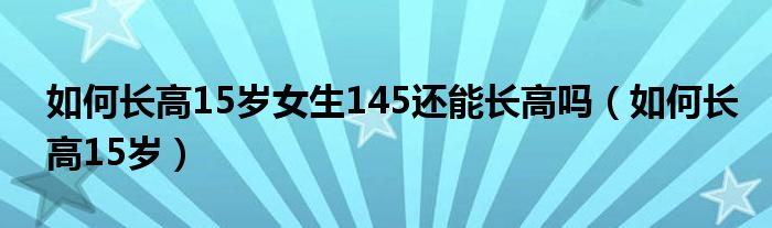 关于如何长高15岁女生145还能长高吗,如何长高15岁这个很多人还不知道,今天菲菲来为大家解答以上的问题,现在让我们一起来看看吧!