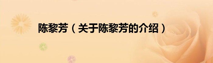 陈黎芳(关于陈黎芳的介绍)