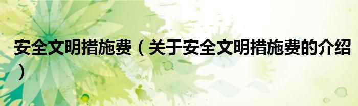 大家好,小都来为大家解答以上的问题。安全文明措施费,关于安全文明措施费的介绍很多人还不知道,现在让我们一起来看看吧!