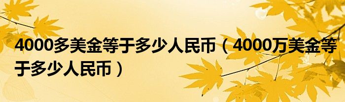 4000多美金等于多少人民币,4000万美金等于多少人民币这个很多人还不知道,小飞来为大家解答以上的问题。现在让我们一起来看看吧!
