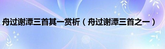舟过谢潭三首其一赏析(舟过谢潭三首之一)
