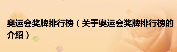 2、奥运会奖牌榜是依照国际奥林匹克委员会的官方排名榜排列,列出参与这届奥运会并获得奖牌的队伍与其所得的奖牌枚数,首先衡量金牌枚数的多少,银牌次之,最后对比铜牌枚数。