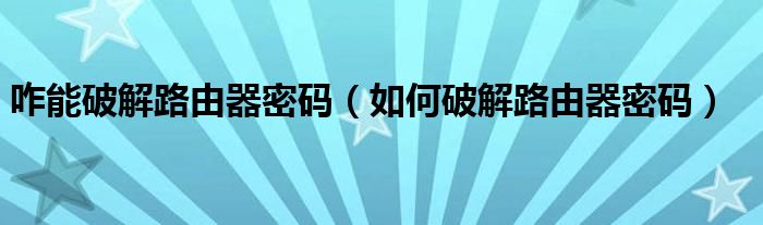 咋能破解路由器密码(如何破解路由器密码)