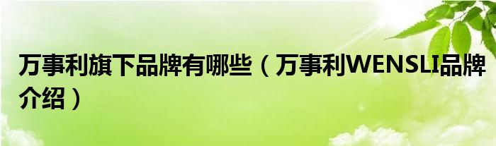 大家好,小源来为大家解答以上问题。万事利旗下品牌有哪些,万事利WENSLI品牌介绍很多人还不知道,现在让我们一起来看看吧!