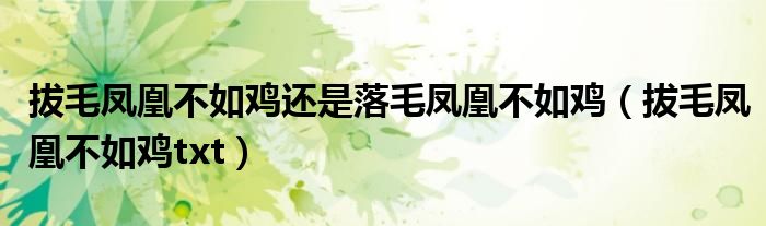 拔毛凤凰不如鸡还是落毛凤凰不如鸡,拔毛凤凰不如鸡txt这个很多人还不知道,小飞来为大家解答以上的问题。现在让我们一起来看看吧!