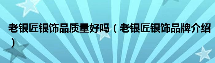 老银匠银饰品质量好吗(老银匠银饰品牌介绍)