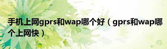 大家好,小晋来为大家解答以下问题,关于手机上网gprs和wap哪个好,gprs和wap哪个上网快很多人还不知道,今天让我们一起来看看吧!