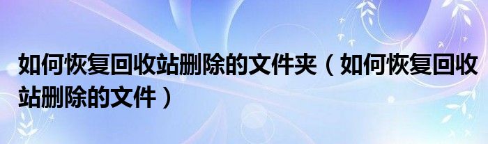 大家好,雨雨来为大家解答以上问题,如何恢复回收站删除的文件夹,如何恢复回收站删除的文件很多人还不知道,现在让我们一起来看看吧!