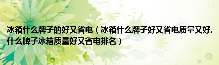 大家好,小常来为大家解答以上问题。冰箱什么牌子的好又省电,冰箱什么牌子好又省电质量又好,什么牌子冰箱质量好又省电排名很多人还不知道,现在让我们一起来看看吧!