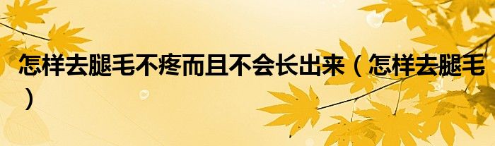大家好,linda来为大家解答以上的问题。怎样去腿毛不疼而且不会长出来,怎样去腿毛很多人还不知道,现在让我们一起来看看吧!
