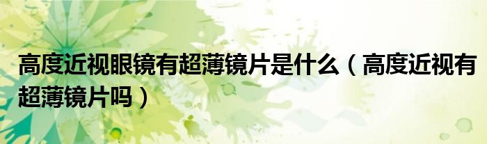大家好,linda来为大家解答以上的问题。高度近视眼镜有超薄镜片是什么,高度近视有超薄镜片吗很多人还不知道,现在让我们一起来看看吧!