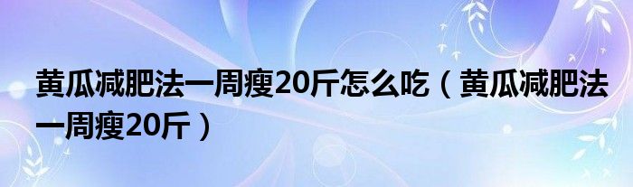 大家好,linda来为大家解答以上的问题。黄瓜减肥法一周瘦20斤怎么吃,黄瓜减肥法一周瘦20斤很多人还不知道,现在让我们一起来看看吧!