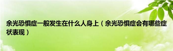 大家好,linda来为大家解答以上的问题。余光恐惧症一般发生在什么人身上,余光恐惧症会有哪些症状表现很多人还不知道,现在让我们一起来看看吧!