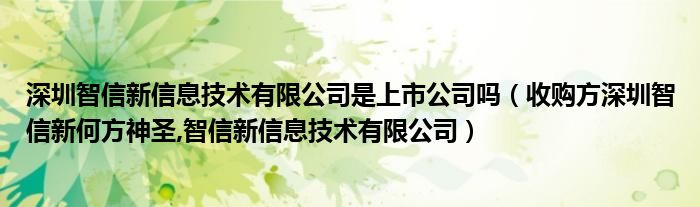 大家好,小常来为大家解答以上问题。深圳智信新信息技术有限公司是上市公司吗,收购方深圳智信新何方神圣,智信新信息技术有限公司很多人还不知道,现在让我们一起来看看吧!