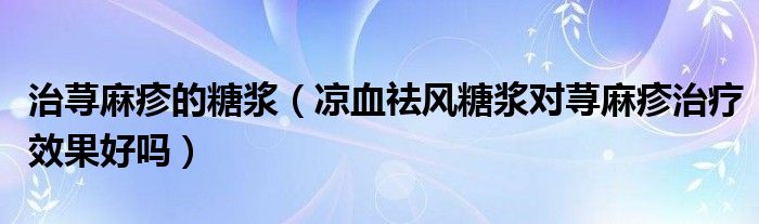 大家好,linda来为大家解答以上的问题。治荨麻疹的糖浆,凉血祛风糖浆对荨麻疹治疗效果好吗很多人还不知道,现在让我们一起来看看吧!