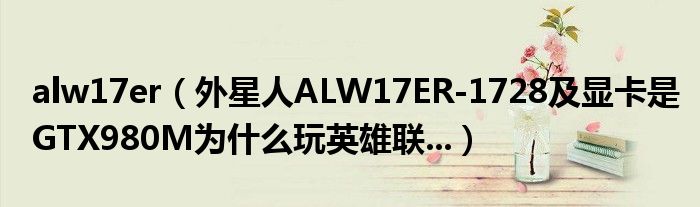 大家好,小常来为大家解答以上问题。alw17er,外星人ALW17ER-1728及显卡是GTX980M为什么玩英雄联...很多人还不知道,现在让我们一起来看看吧!