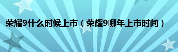 3,荣耀9什么时候上市?:荣耀9已于2017年6月份上市。荣耀9后置双镜头,不仅美得出众,还有海鸥灰、魅海蓝、琥珀金、幻夜黑、知更鸟蓝多种配色可选,尤其海鸥灰,玻璃机身在光线下折射出如金属光泽般的炫光,呈现独特气质。基本配置如下:1、5.15英寸的屏幕,精致小巧,3D曲面极光玻璃机身可随时空变化而绽放不同光芒。2、前置摄像头800万,F2.0光圈,自拍更清晰;后置2000万像素(黑白)+1200万像素(彩色),F2.2光圈,支持人像模式和暗光夜拍技术,还有类似单反相机的变焦效果,即使远景放大2倍拍,也能拍出高像素的清晰照片。3、音质上采用的高保真Hi-Fi芯片,加上Histen音效技术与格莱美获奖大师的专业调音,让荣耀9播放出的声音更悦耳动听。4、搭载麒麟960芯片八核 + 微智核i6的处理器,性能更出众,久用依然流畅。5、电池容量为3200mAh,持久续航,支持9V/2A快速充电。建议您可以登录华为商城来了解产品的更多信息。