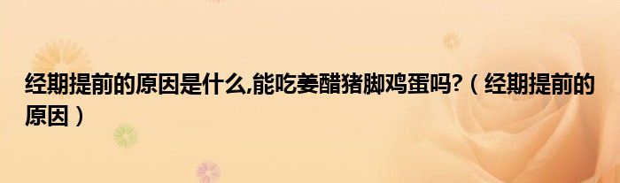 大家好,linda来为大家解答以上的问题。经期提前的原因是什么,能吃姜醋猪脚鸡蛋吗?,经期提前的原因很多人还不知道,现在让我们一起来看看吧!