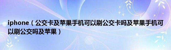 大家好,小常来为大家解答以上问题。iphone,公交卡及苹果手机可以刷公交卡吗及苹果手机可以刷公交吗及苹果很多人还不知道,现在让我们一起来看看吧!