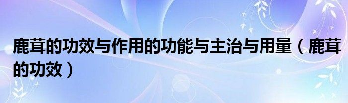 鹿茸的功效与作用的功能与主治与用量(鹿茸的功效)