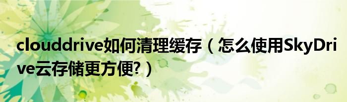 大家好,今天小悦来为大家解答以上问题。clouddrive如何清理缓存,怎么使用SkyDrive云存储更方便?很多人还不知道,现在让我们一起来看看吧!