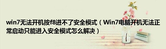 大家好,今天小悦来为大家解答以上问题。win7无法开机按f8进不了安全模式,Win7电脑开机无法正常启动只能进入安全模式怎么解决很多人还不知道,现在让我们一起来看看吧!