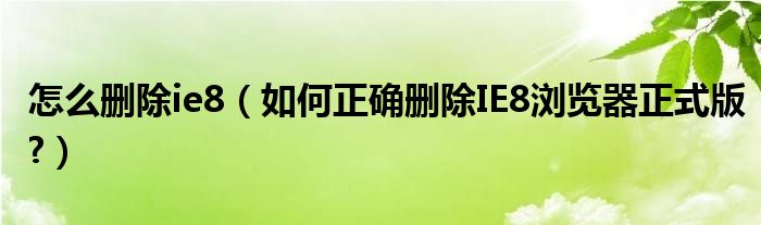 大家好,今天小悦来为大家解答以上问题。怎么删除ie8,如何正确删除IE8浏览器正式版?很多人还不知道,现在让我们一起来看看吧!