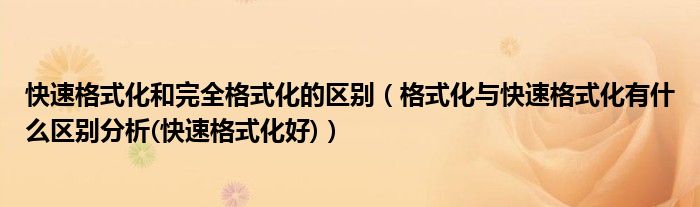大家好,今天小悦来为大家解答以上问题。快速格式化和完全格式化的区别,格式化与快速格式化有什么区别分析(快速格式化好)很多人还不知道,现在让我们一起来看看吧!