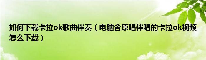 大家好,今天小悦来为大家解答以上问题。如何下载卡拉ok歌曲伴奏,电脑含原唱伴唱的卡拉ok视频怎么下载很多人还不知道,现在让我们一起来看看吧!
