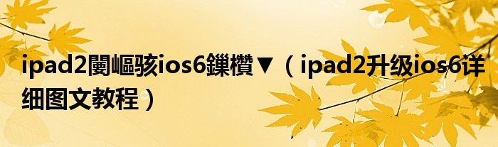 大家好,今天小悦来为大家解答以上问题。ipad2闄嶇骇ios6鏁欑▼,ipad2升级ios6详细图文教程很多人还不知道,现在让我们一起来看看吧!