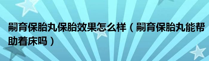 大家好,linda来为大家解答以上的问题。嗣育保胎丸保胎效果怎么样,嗣育保胎丸能帮助着床吗很多人还不知道,现在让我们一起来看看吧!