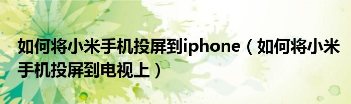 大家好,今天小悦来为大家解答以上问题。如何将小米手机投屏到iphone,如何将小米手机投屏到电视上很多人还不知道,现在让我们一起来看看吧!