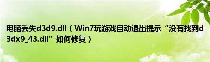 电脑丢失d3d9.dll(Win7玩游戏自动退出提示“没有找到d3dx9_43.dll”如何修复)