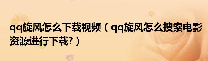 大家好,今天小悦来为大家解答以上问题。qq旋风怎么下载视频,qq旋风怎么搜索电影资源进行下载?很多人还不知道,现在让我们一起来看看吧!