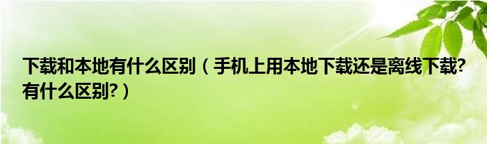 大家好,今天小悦来为大家解答以上问题。下载和本地有什么区别,手机上用本地下载还是离线下载?有什么区别?很多人还不知道,现在让我们一起来看看吧!