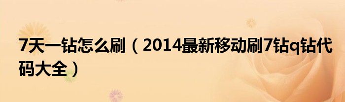 大家好,今天小悦来为大家解答以上问题。7天一钻怎么刷,2014最新移动刷7钻q钻代码大全很多人还不知道,现在让我们一起来看看吧!