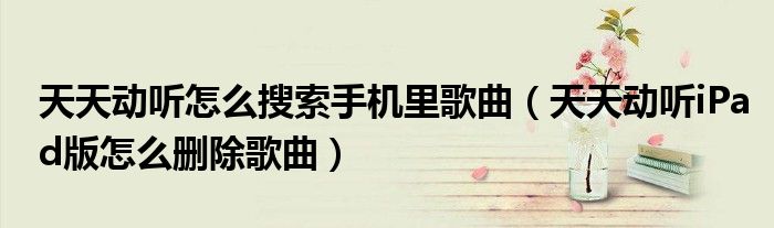 大家好,今天小悦来为大家解答以上问题。天天动听怎么搜索手机里歌曲,天天动听iPad版怎么删除歌曲很多人还不知道,现在让我们一起来看看吧!