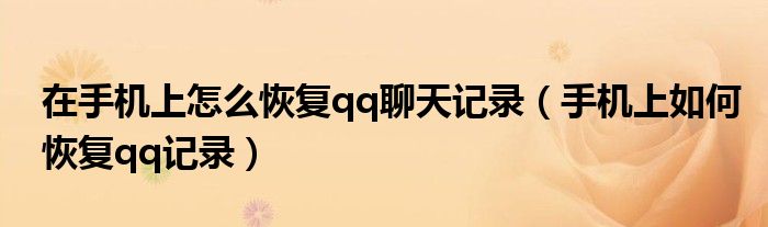 大家好,小晋来为大家解答以下问题,关于在手机上怎么恢复qq聊天记录,手机上如何恢复qq记录很多人还不知道,今天让我们一起来看看吧!