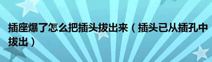 大家好,雨雨来为大家解答以上问题,插座爆了怎么把插头拔出来,插头已从插孔中拔出很多人还不知道,现在让我们一起来看看吧!