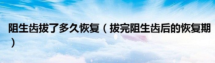 大家好,linda来为大家解答以上的问题。阻生齿拔了多久恢复,拔完阻生齿后的恢复期很多人还不知道,现在让我们一起来看看吧!