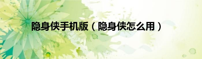 大家好,雨雨来为大家解答以上问题,隐身侠手机版,隐身侠怎么用很多人还不知道,现在让我们一起来看看吧!