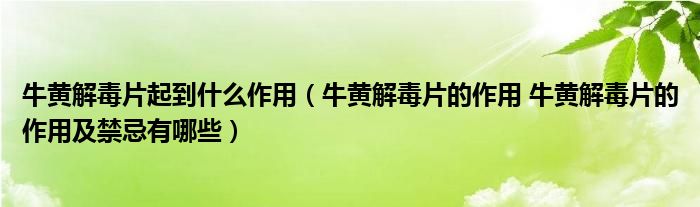 大家好,linda来为大家解答以上的问题。牛黄解毒片起到什么作用,牛黄解毒片的作用 牛黄解毒片的作用及禁忌有哪些很多人还不知道,现在让我们一起来看看吧!