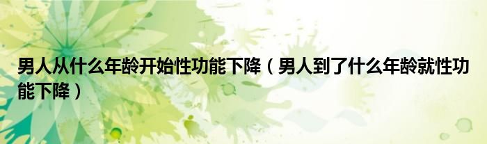 大家好,linda来为大家解答以上的问题。男人从什么年龄开始性功能下降,男人到了什么年龄就性功能下降很多人还不知道,现在让我们一起来看看吧!